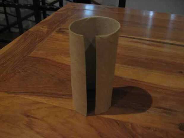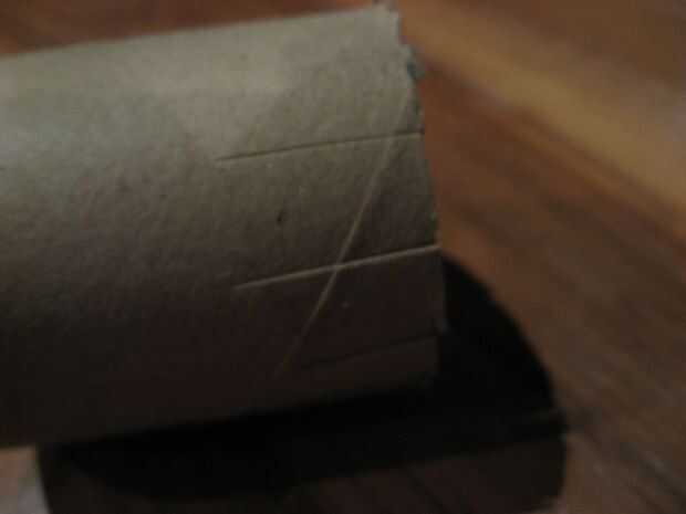 El rollo sin modificar y cortar por la mitad. Esto es más fácil con un cuchillo x-acto pero tijeras funcionará también. Hacer cortes verticales alrededor de 1 pulgada a lo largo del perímetro de una de las mitades. Dejar aproximadamente 3/4 pulgadas de espacio entre los cortes.