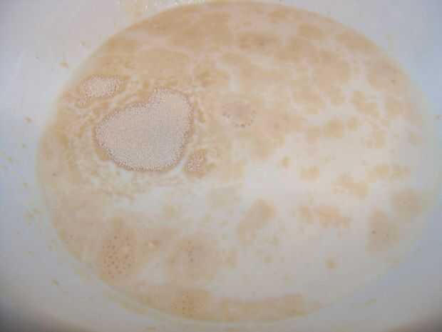Que este siente, cubierta por una toalla húmeda, durante unos cinco o diez minutos.  En ese punto, la levadura debe tener activado y comenzó a burbujear.