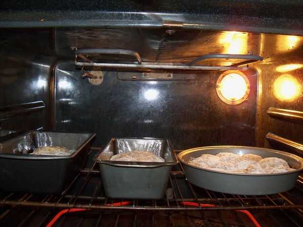 Coloque el pan en la rejilla del centro.  Hornear durante 35-40 minutos, o hasta que la parte superior es marrón.