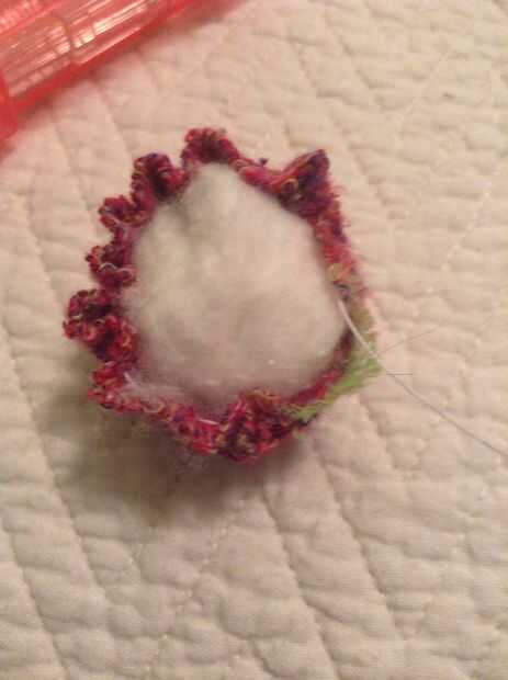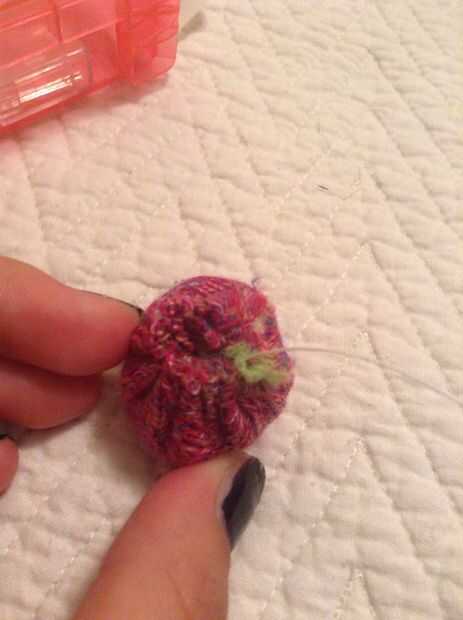 Tomar el calcetín extra sobrante y cortar dos círculos desordenados. Coser por el borde exterior entrando y saliendo. Material algodón / lana y tire firmemente cerraron.