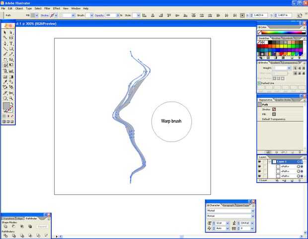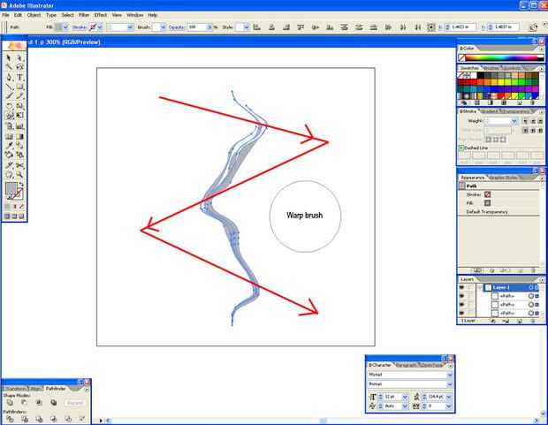 Una vez ajustado el tamaño del pincel, haga clic en y mantenga su ratón y ejecutar la herramienta de deformación en sus plumas en forma de "Z".