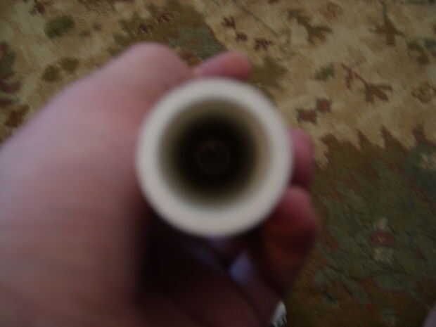 Corte el tubo a la longitud deseada y agregar las tapas. Si tienes cemento de PVC, ahora es el momento para su uso, siga las instrucciones en la lata. Taladre los agujeros en las tapas superior y tornillo en los ojos del tornillo hasta que estén bien ajustadas. Ahora use sus alicates de punta y un poco codo grasa doblar abrir un enlace en la cadena, una vez abierto puede poner en el ojo del tornillo y cierre alrededor de él con los alicates. Repita al otro lado. Ahora Envuelva la cinta aislante alrededor de la tubería tanto como quieras, puede agregar más capas para una sensación cómoda y mantener mejor. ADVERTENCIA: No añada peso al interior de estos!! Bueno, supongo podría, pero no lo recomiendo. Si esas cosas le golpeó en la pierna y está cargadas, usted irá como un caballo muerto. El siguiente es un cuadro del interior hueco de mis tiradas.