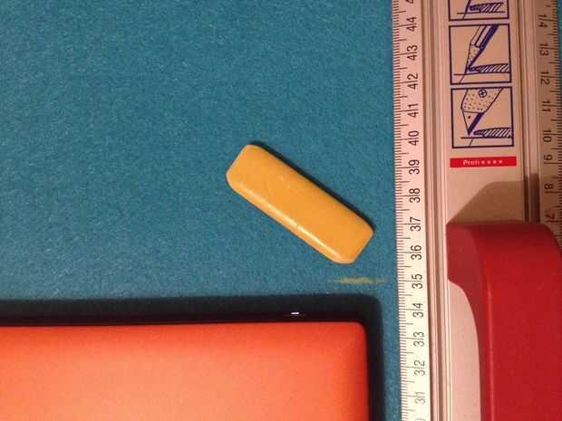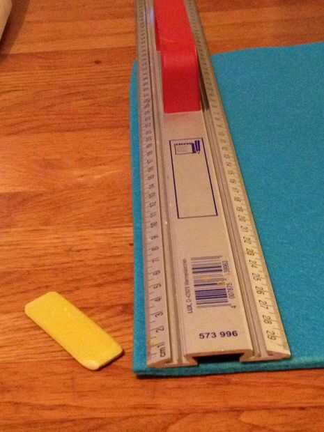 El fieltro con la tiza de marcar y cortar.