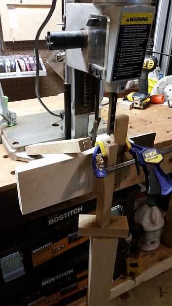 Mi plan original era a cantear-6/4 material para hacer las piezas vertical y plano todo el conjunto para que coincida con. Me di cuenta después de que empecé fue un lazo oculto en medio de la Junta de 6/4. Había seguido a través de, la cosa entera habría sido deforme así que me vi obligado a ir todo el espesor de todo el conjunto. Problema era que ahora era corto en el material. La Junta no fue tiempo suficiente para conseguir todas las piezas que necesitaba así que tuve que construir los seis soportes sin espigas. La parte superior e inferior ya tenían los agujeros aburridos, por lo que sería no regresar y el uso de tacos, etc.. En cambio, quitar la cabeza de la escopleadora, había girada alrededor y había fijada la base en mi banco de trabajo de la parte posterior. He pegado a un soporte por debajo de la valla y había tallado nuevo mortajas en los soportes, superior e inferior. Cortar algunos ½" roble para emparejar y añadido las espigas que necesitaba para el proyecto (sobre 1" saliente). Una vez hecho esto, estaba lista para la Asamblea.