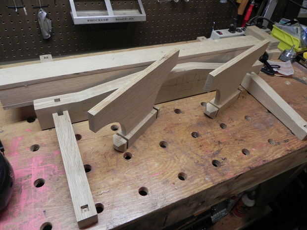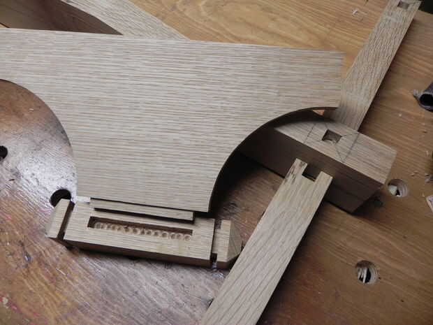 También usé a la escopleadora para añadir más nuez clavijas y un canal para unir los bloques a los soportes.