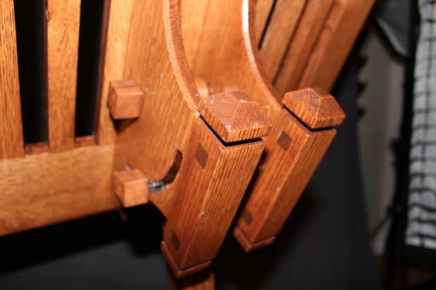 De interés añadido, corté un par de 1.5" bloques cuadrados de 6" alto para la espalda y utiliza mi mesa de sierra para cortar unas muescas en los lados como tapas en la parte superior e inferior. Estos se reunieron con mortajas más