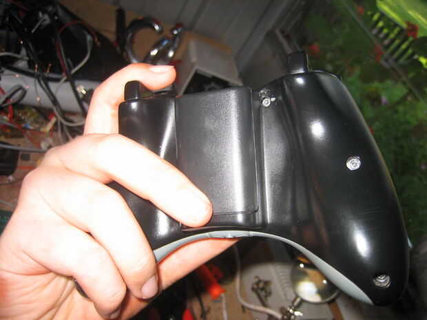 Soy diestra, así que mina era aproximadamente 1/7 la manera de la Shell, en el lado derecho del controlador y era cómoda para esta area con mi dedo del medio de prensa.