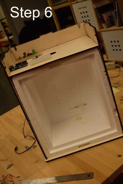 - Ahora pueden mover la caja de la espuma de poliestireno en el recinto.
