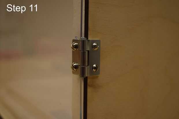 - Lo último es fijar la puerta. Utilizamos dos bisagras de metal en un lado y un pequeño imán como la cerradura al otro lado. Usted tendrá que personalizar el diseño de la puerta según los recursos que posee.