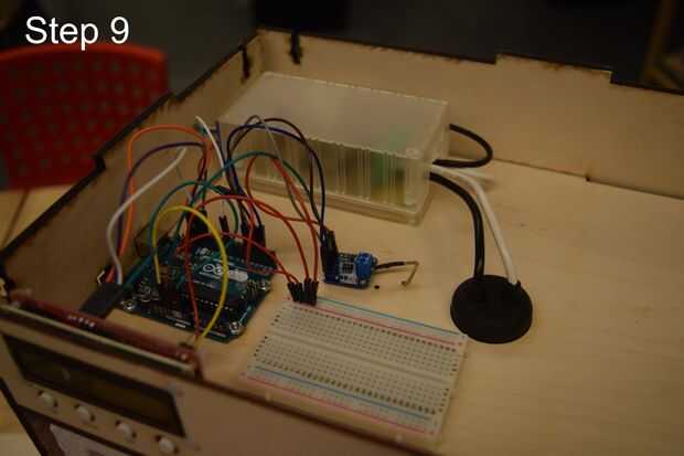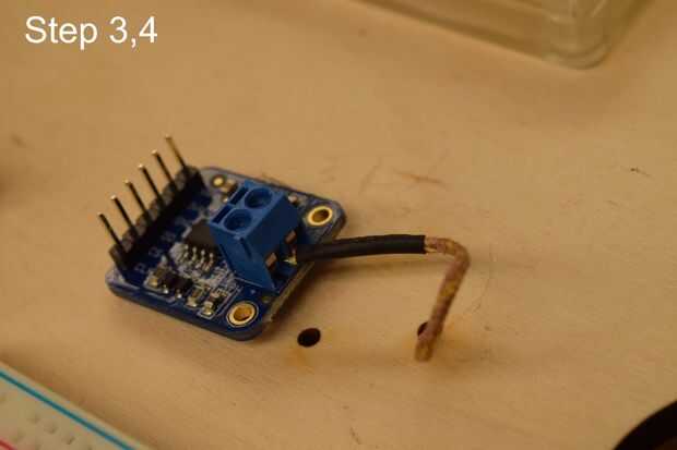 - Ahora coloque el extremo libre del cable del termopar a través del orificio al lado del amplificador thermocoupler en el panel de circuito. Luego ponerlo dentro de la caja de la espuma de poliestireno como lo hizo en la prueba de paso y pegarlo a la pared de la caja con una cinta.