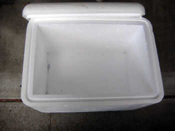 1 poliestireno pecho, las paredes más gruesas de hielo mejor (tengo mi caja de envío de carne Omaha gratis preguntando en Craigslist).