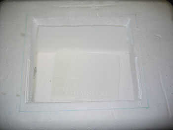 Con su cuchillo de sierra o la hoja de sierra, corte dentro de la marcada línea por lo menos 1/2", para que la ventana sobrepuesta en él tiene un área sólida de apoyo, todo el camino alrededor.