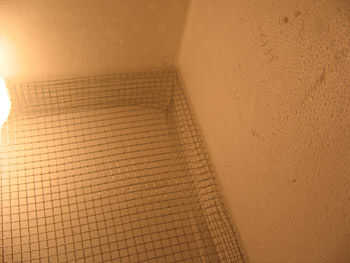 Doble hacia abajo los lados a una altura de 2", para que las esquinas con perfectamente. y el piso es tan plano como lo puede hacer. Lugar un vacío, poca profundidad de agua en la parte inferior de la nevera, y luego instalar el piso de alambre por encima de él, con el termostato encima de la planta de alambre en el mismo nivel se encuentran los huevos. Asegúrese de que el plato de agua debajo es bastante superficial que no interfiere con la endecha del piso de alambre. NO AGREGUE AGUA TODAVÍA.