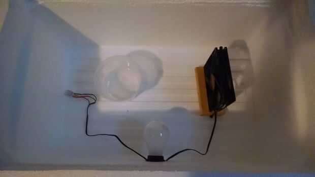 Conectado el ventilador a una pieza de madera con ataduras de cremallera. Poner algunos de fieltro entre el ventilador y la madera para reducir el ruido. Iba a pegar la madera al contenedor, pero terminó encima de dejar sólo sentarse en allí.