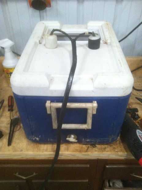 Paso 1: refrigeradorNo Compro uno. Conseguir uno, con un drenaje, en una venta de garaje. Desenroscar todo el hardware.Paso 2: vaciarRetire el drenaje con una llavePaso 3: Tapón de drenajeRetire esto demasiado y póngala a un lado.Paso 4: piernasConst