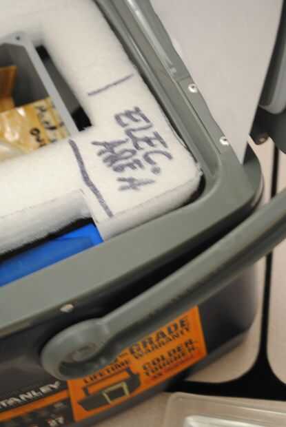 Ahora, agrega un capas medias recortadas de espuma, manteniendo los componentes ordenados.
