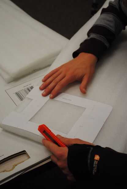 Tu objetivo en este paso es cortar espuma para ocupar el espacio libre entre el compartimiento refrigerador y de interior. Utilizando los patrones puede acelerar este proceso si utiliza nuestros componentes. Se recomienda utilizar espuma de célula cerrada con un valor-r alto.