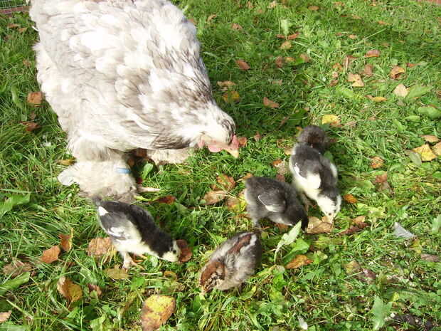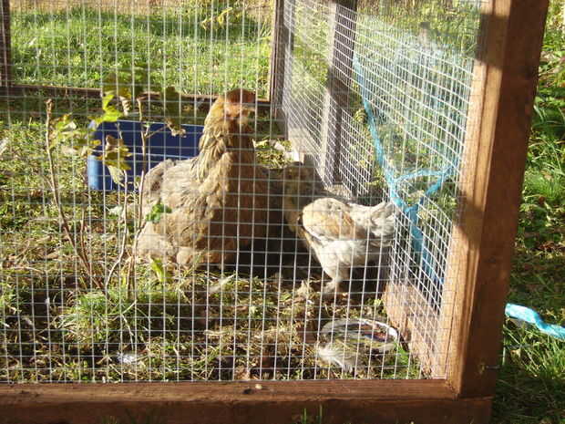 Me rekommend que construir una yarda de polluelos con pequeños polluelos-malla y malla por encima (escudos contra urracas, gatos y todos los otros depredadores que quieren comer sus pollitos preciosos.