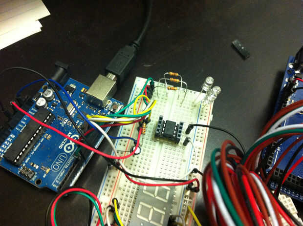 Si usted desea utilizar código predefinido, ver el sketch de Arduino conectado. Es una versión modificada del bosquejo de ejemplo TM1640.