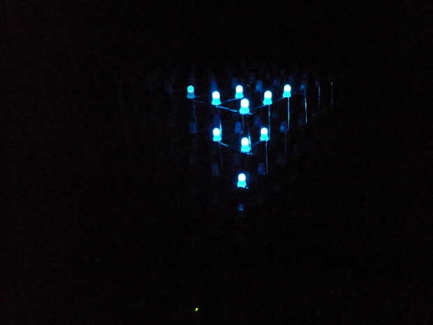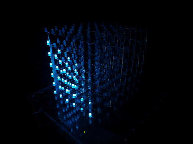 El programa empieza eligiendo al azar un vértice del cubo. Cada paso, las luces de avanzan hacia fuera desde su vértice inicial hacia la esquina opuesta. Cuando la luz ha llenado el cubo entero, retiros de la esquina donde se inició. La rutina se repite entonces con una nueva esquina al azar.