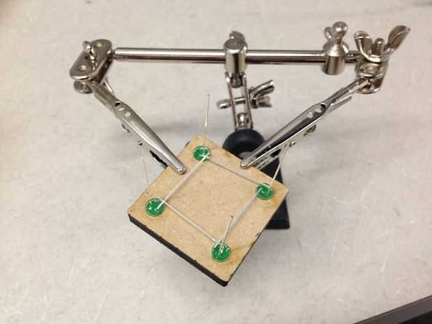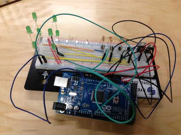 Construí un 2 x 2 x 2 cubos de 8 LEDs verdes que mentían alrededor en la escuela y lo consiguió a la luz en un patrón espiral. No voy a entrar en detalle aquí, ya que los métodos utilizados para construir el prototipo son las mismas del cubo principal.