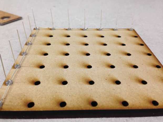Para la soldadura de cada capa de la rejilla LED, necesitaremos una plantilla 2D. Medir la pierna más corta de su LED con un par de pinzas, o en su defecto, una regla.
