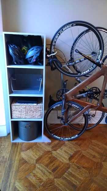 Ahora que el proyecto termine, las bicicletas se podrían almacenar cuidadosamente donde pones el pie! Los estantes grandes proporcionan mucho espacio de almacenamiento para la parafernalia de la bici y otras cosas. En general, este proyecto fue rápida, fácil y muy eficaz. Me encantaría ver en los comentarios si se ocurre otras maneras inteligentes para guardar sus bicicletas!