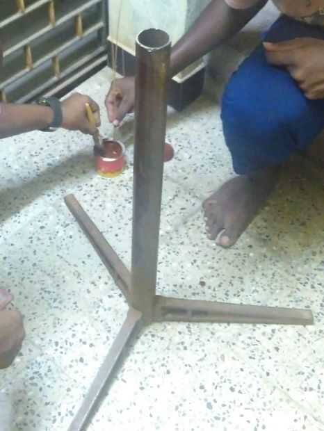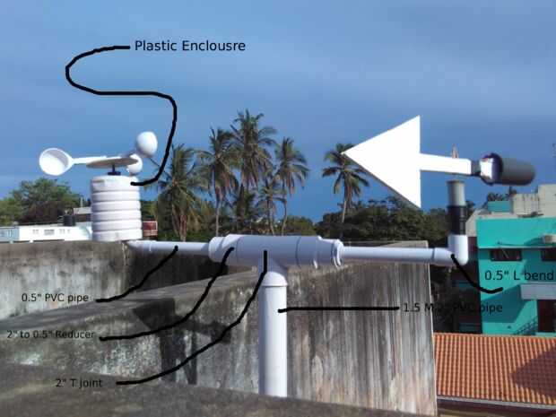 Para el montaje de la tubería de PVC utilizamos un trípode viejo que hemos rescatados de un viejo telescopio. Estaba hecha de acero y al parecer me puedo sostener la estación.