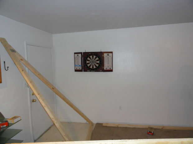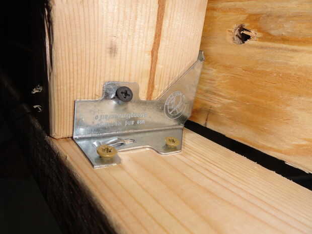 -Una vez que el perno en su lugar instale los soportes de viga primero martilleo en las paradas y luego fíjelo con tornillos de 1.25" en el lado y luego con tornillos de 3" en la 2 x 4. Compruebe los cuadros para más detalles.