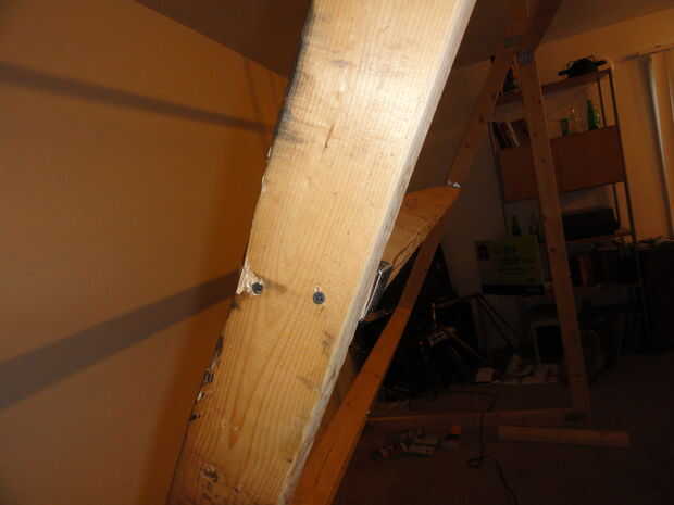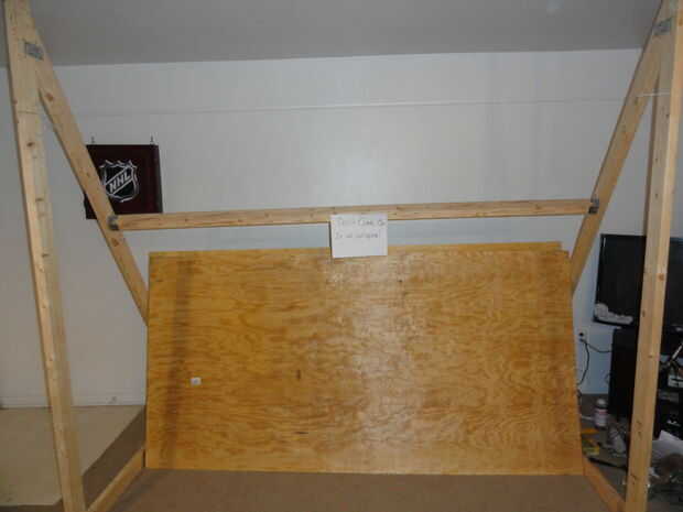 Opté por usar 4 vigas horizontales para el alero y 2 vigas en la parte superior que las láminas de madera contrachapada entonces ser atornilladas en.