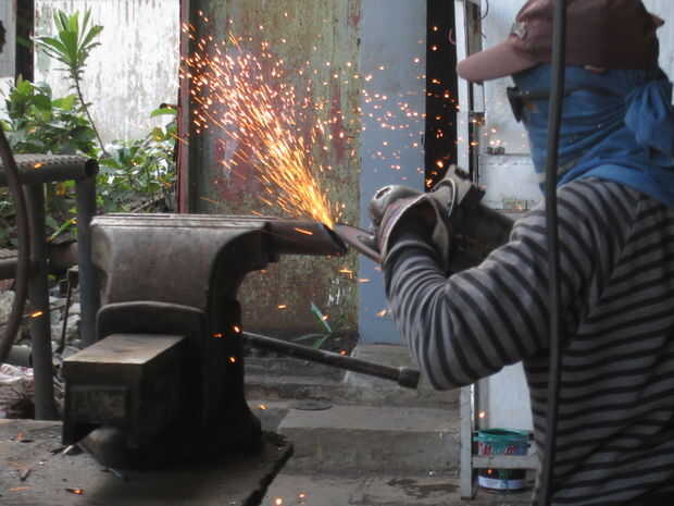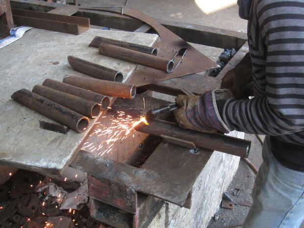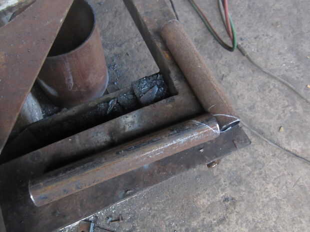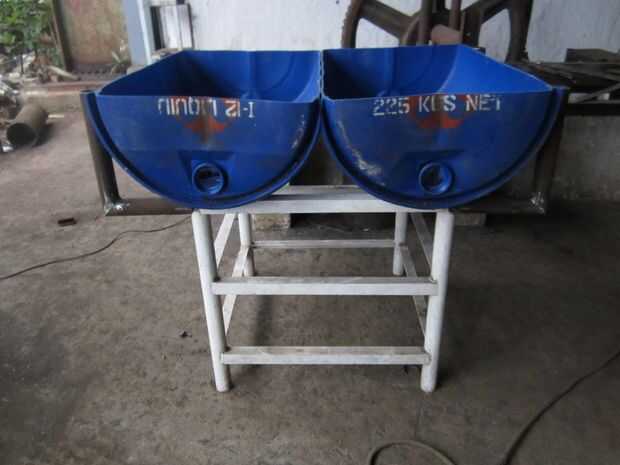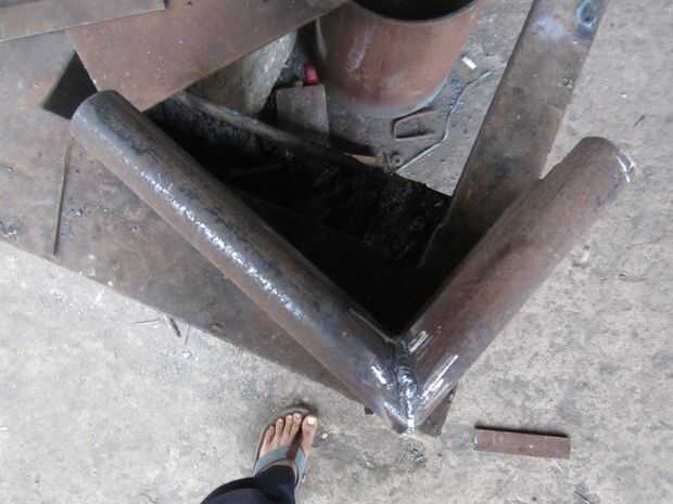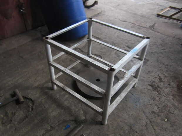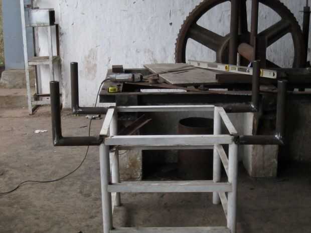 El marco principal que usé fue un repuesto que encontré en el garaje. Es muy ideal y perfecto para apoyar el tambor de PVC. También utilicé viejos tubos de la caldera para volver a fabricar el marco debido a su disponibilidad. Hice cuatro ángulo recto fuera de los tubos de la caldera antigua. Al cortar los tubos he usado un soplete de acetileno, luego apagado bruto los bordes y luego soldando.