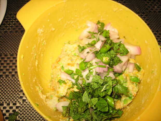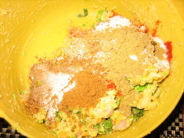 Primero agregue todos las verduras cocidas y puré y el queso en un bol grande. Añadir cebolla, verde frío, sal, azúcar, polvo frío, polvo de coriandro, comino, pimienta negra en polvo, Garam Masala, Chaat masala o polvo secado de Mango, jengibre y pasta de ajo, cilantro fresco, semillas de Carambola y jugo de limón. Mezclar bien y a fondo para que usted conseguir el sabor adecuado y sabor en cada bocado.