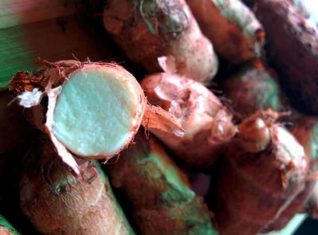 Malanga es originaria de sur de la India y el sudeste asiático. Es una planta perenne, tropical cultivada principalmente como una raíz vegetal por su cormo almidón comestible y como una verdura de hoja. Es un alimento básico en África, Oceanía y sur