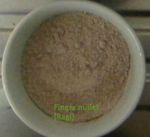 -1 taza de harina de fingermillet se añade por encima la mezcla.