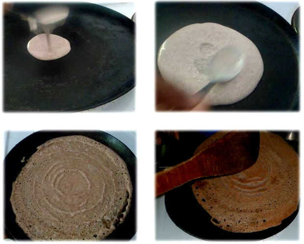 -Dale la masa de dosa licencia hasta los bordes exteriores poco marrón y la parte inferior del dry.when es totalmente marrón y crujiente.