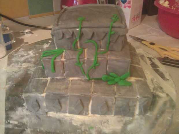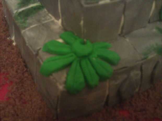 Utilizar un poco de fondant verde para que algunas zonas verdes. Todo esto fue esculpido por ojo pero si tienes cortadores de hoja que se fría demasiado.