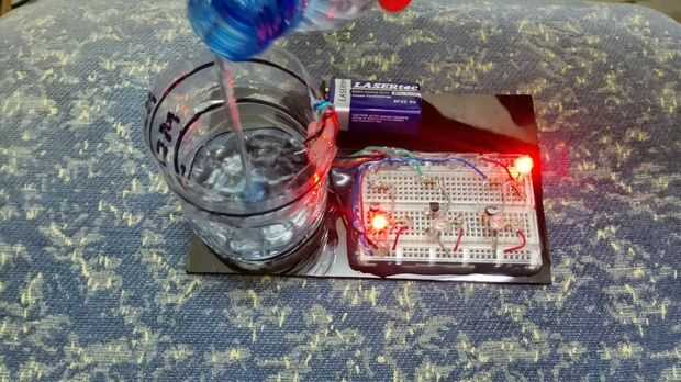 Indicación de nivel de agua usando combinación de tres Transistores NPN (6 / 8 paso)