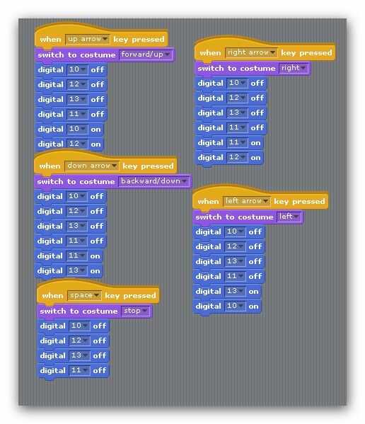 Esto significa que el traje le cambió el traje de flecha verde izquierda y la configuración del pin digital es utilizada para girar el robot a la izquierda