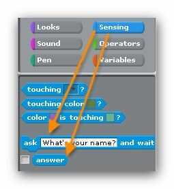 El bloque de respuesta es el resultado de la pregunta de entrada pedir. Así que cuando el lector Lee un código de barra izquierdo los contenidos del bloque de respuesta es igual a la variable cadena "izquierda".