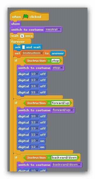 La siguiente parte del programa pregunta un si pregunta - si el valor contenido en la variable de la instrucción es igual a una dirección por ejemplo, "izquierda" entonces completa el resto de las instrucciones debajo de él.