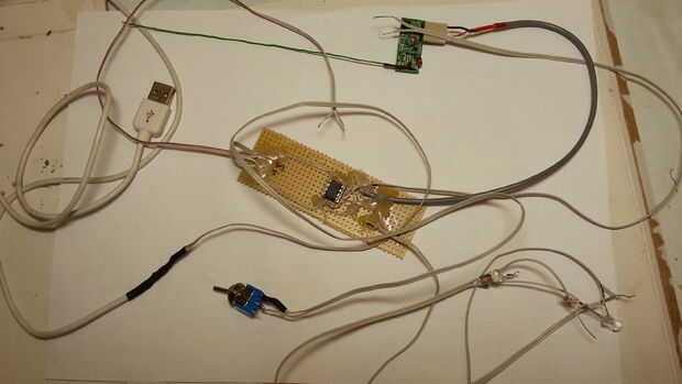 Preper todo el circuito y soldar sólo si cabe a su caja, en mi caso soldar el cable USB y el botón de modo de cambiar solamente después de colocar el circuito y perforar los agujeros en la caja.