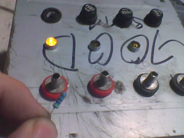 Segunda foto muestra la carga aplicada y fusible instalado. LED está indicando que el fusible esté buena.