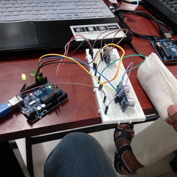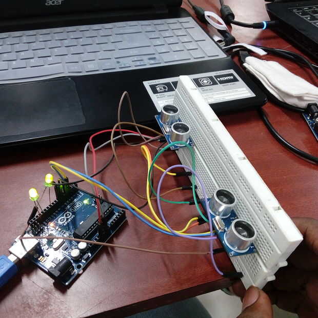 Ahora si ningún objeto se coloca antes de sus sensores, ambos LED se iluminará, que denota que ese punto está disponible para aparcar. Si coloca un objeto, por ejemplo, un coche de juguete antes de su sensor que correspondiente se apagará, mostrando que está ocupada. Este proyecto tomaría menos de una hora para construir y ejecutar todos los componentes y podría ser un proyecto bueno de pequeña escala para los niños.