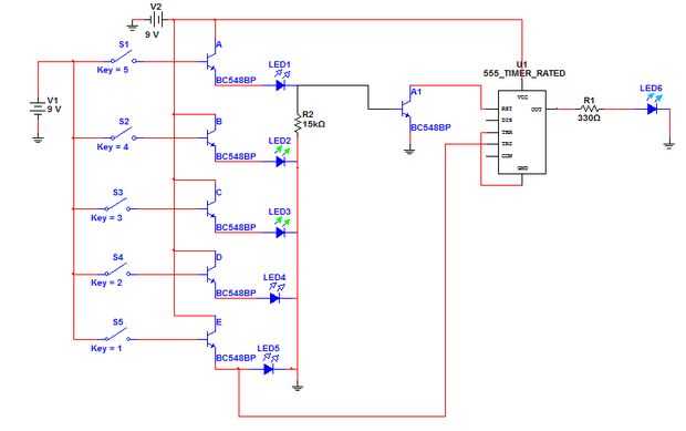 paso 1 piezas1) de la batería y conector2) alambre de3) zumbador4) 5 Led5) 16v condensador6) resistencia 330 ohmAhora puede tomar ayuda con diagrama del circuito si no se puede comprender entonces usted puede preguntarmeMUCHAS GRACIASPaso 1:El borne