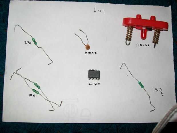 paso 1 piezas1) de la batería y conector2) alambre de3) zumbador4) 5 Led5) 16v condensador6) resistencia 330 ohmAhora puede tomar ayuda con diagrama del circuito si no se puede comprender entonces usted puede preguntarmeMUCHAS GRACIASPaso 1:El borne