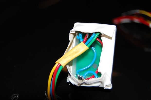 De cómo estamos utilizando el contador, la mayoría de los pines de 8 control se puede soldar juntos. Los pasadores sólo que tenemos que controlar directamente son para el centro y la línea horizontal superior muestra. Para este contador particular, 5v constante se envía a dos de los pines y pasadores están puestos a tierra para mostrar su valor. Como siempre debe estar encendidos, se conecte a tierra los pasadores de la correlación en la muestra exterior del contador. Esto libera pernos en nuestro Arduino para cualquier otra cosa que nos puede interesar hacer. Los dos pernos que necesitamos control de tienen conductores soldados a ellos (codificación de color es importante!).