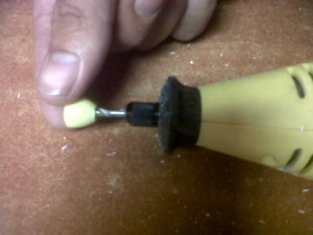 3) taladro un agujero todo el camino, si bien eliminó la espiga que agujero es mitad camino ya hecho como su incrustado en la parte superior.