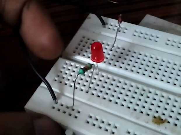 ahora Conecte el Diodo zener a led y un resistor de la serie de 12Kohm para limitar la corriente va al led. ahora este led se enciende cuando el voltaje a través de esta configuración atraviesa 5v.
