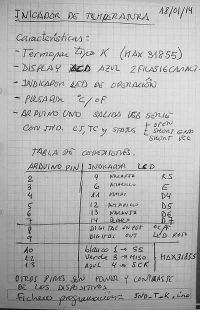Ver colocada una mesa con Arduino, conexiones MAX31855 y pantalla LCD.