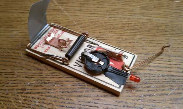 Afronté el LED hacia la parte posterior en lugar de hacia arriba porque estas ratoneras tienden a voltear cuando surgió y quería asegurarse de que era visible sin importar de que lado aterrizó en.